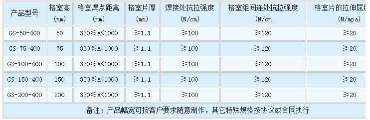 主要土工格室產品技術指標